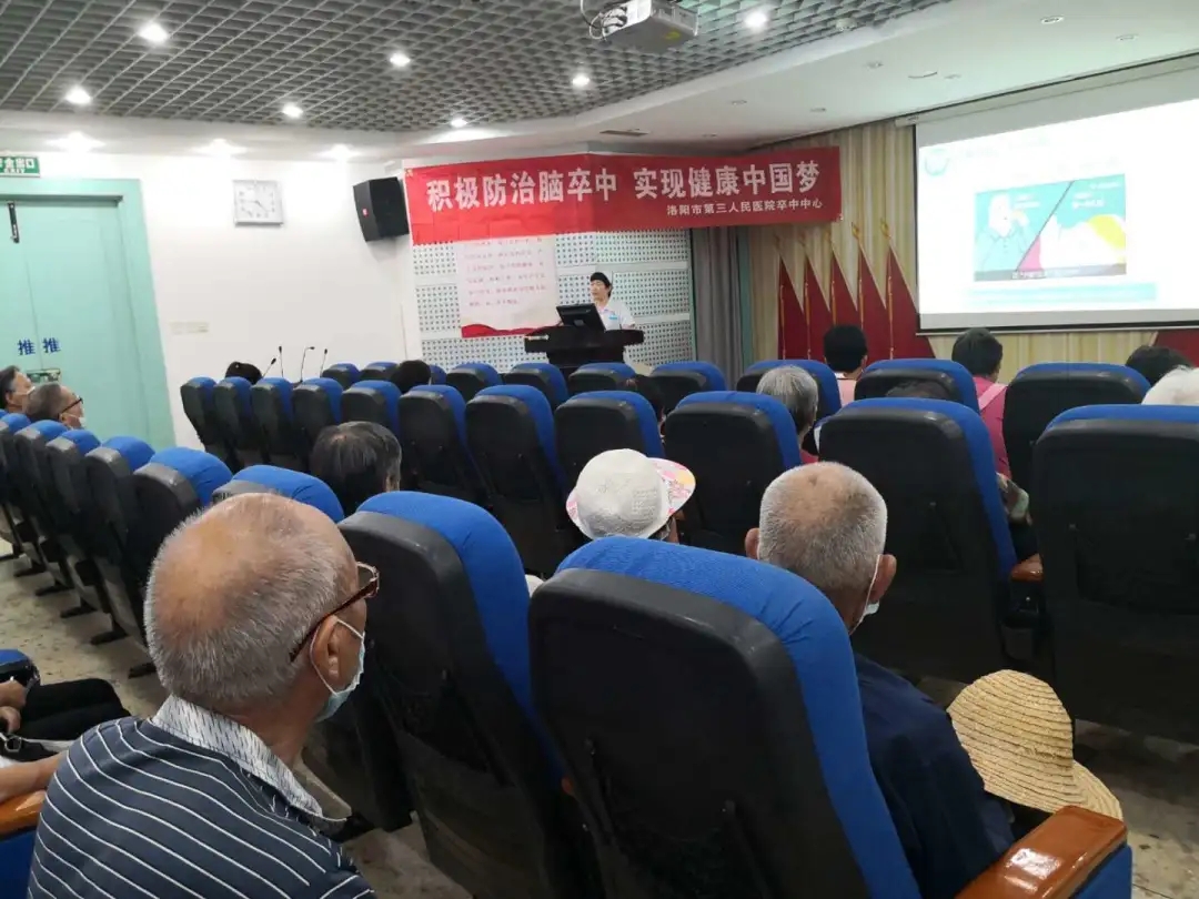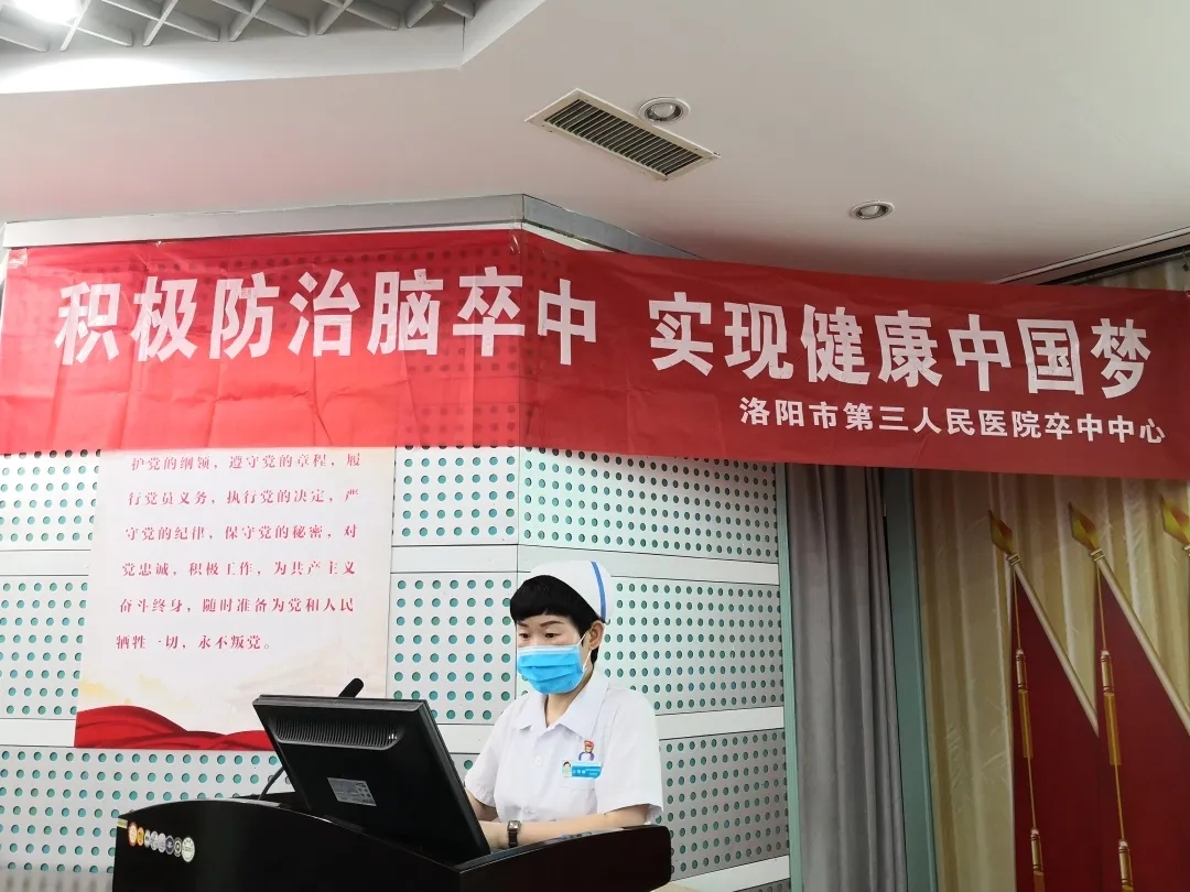 藉此机会,为更好的向群众普及健康知识,不断提高居民群众的健康意识,对脑卒中疾病早发现、早治疗,最大程度减轻后遗症,提高患者的生活质量,洛阳市第三人民医院门诊部联合神经内科病区开展了“早期识别脑卒中”的健康教育讲座,活动吸引了五十余位群众参与。