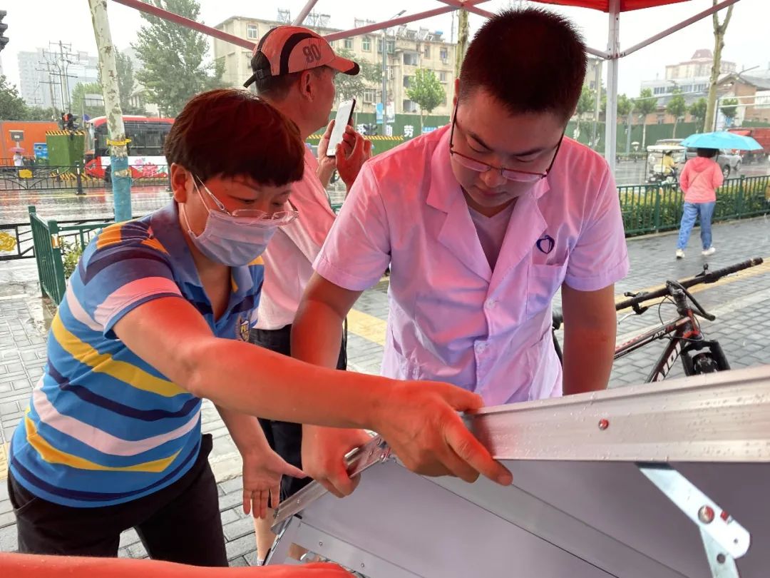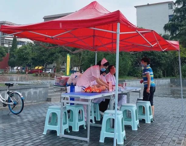 到达目的地时,雨已经从最初的小雨点变得连绵不绝。虽然天公不作美,但挡不住我们送健康的步伐,刚到义诊的地点我们的医疗专家就开始忙碌了起来。百姓也丝毫未受天气的影响,前来咨询的患者络绎不绝。
