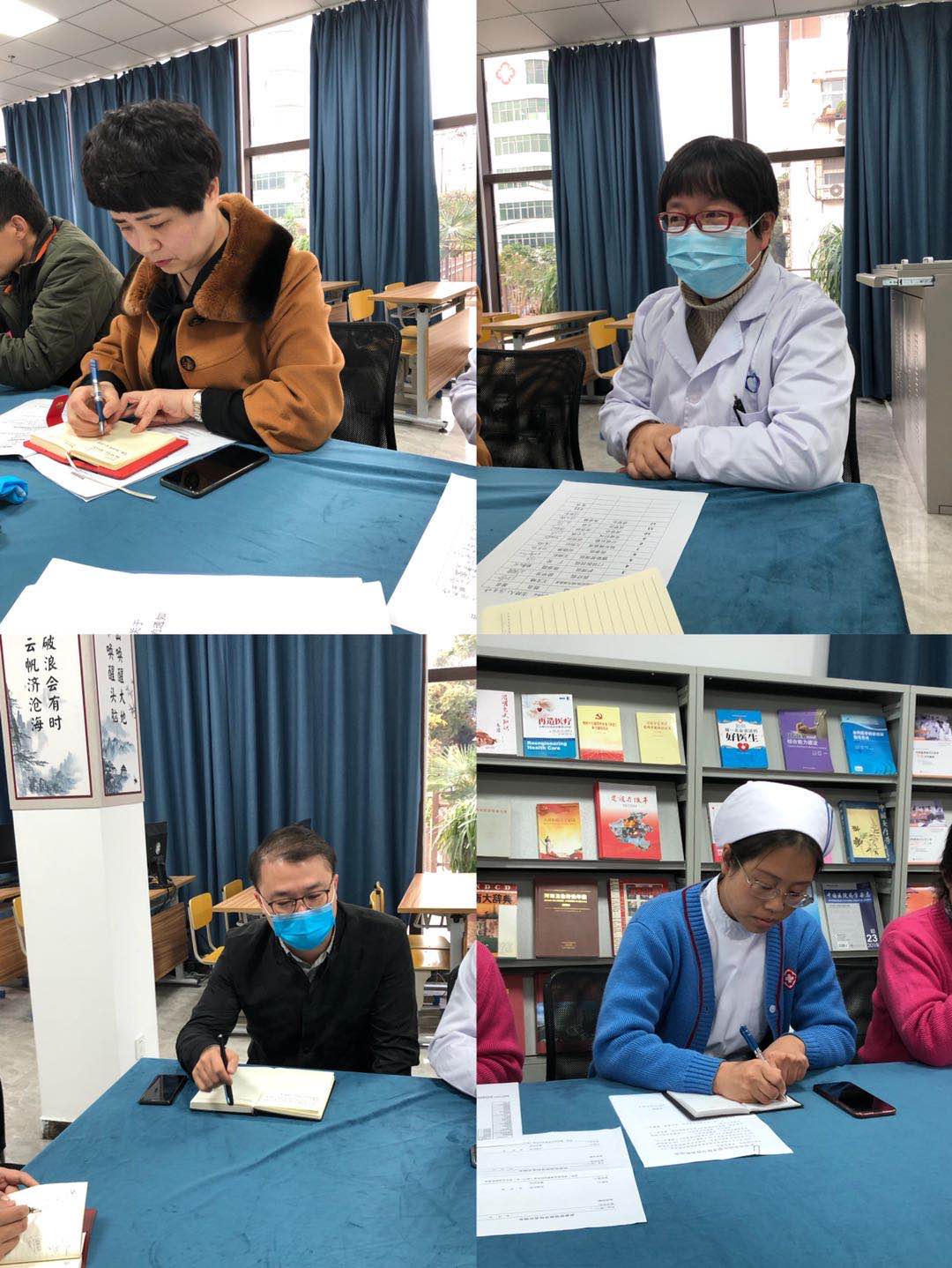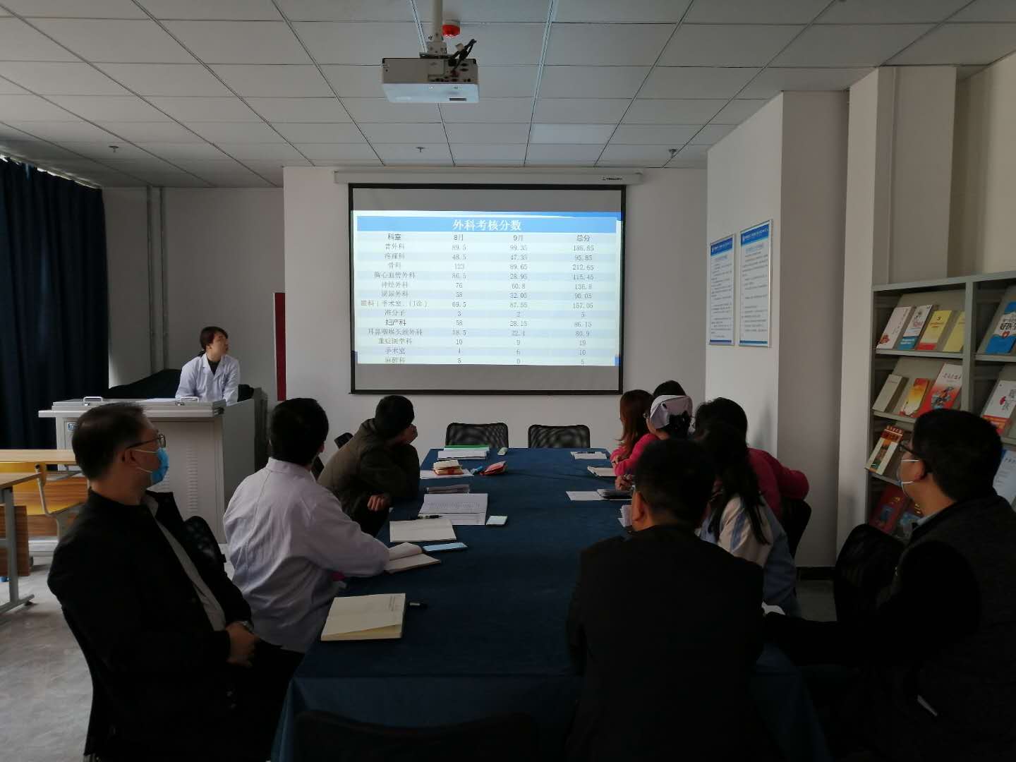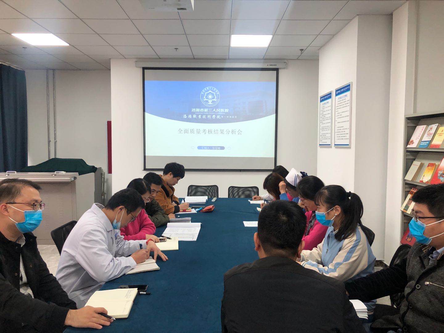 2020年11月04日下午15:00,张杏婷副主任在模拟实训中心图书室主持召开关于全面质量管理考核分析会。