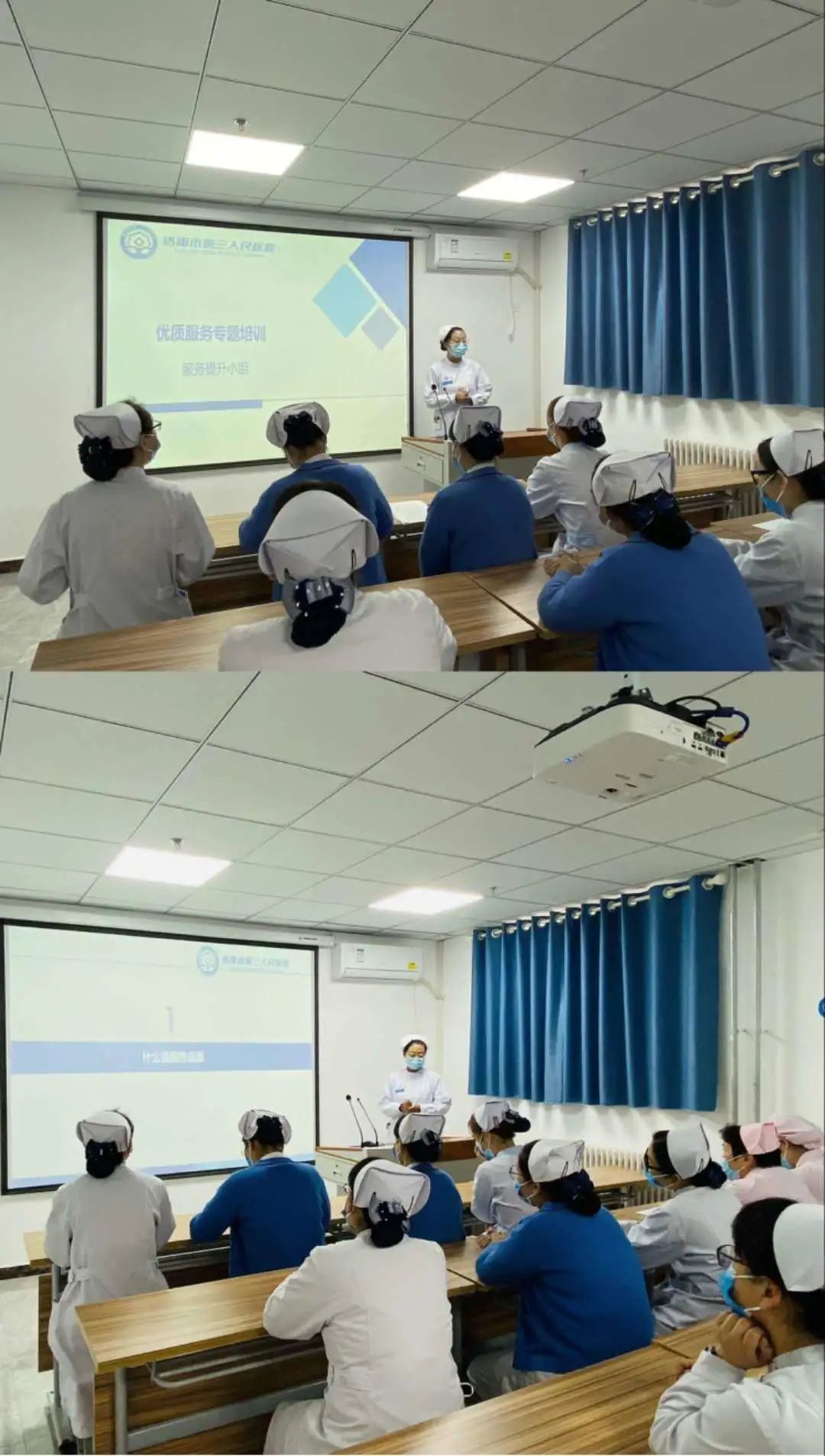 普外科在实训楼组织了优质护理服务培训会,由王新梅护士长主持