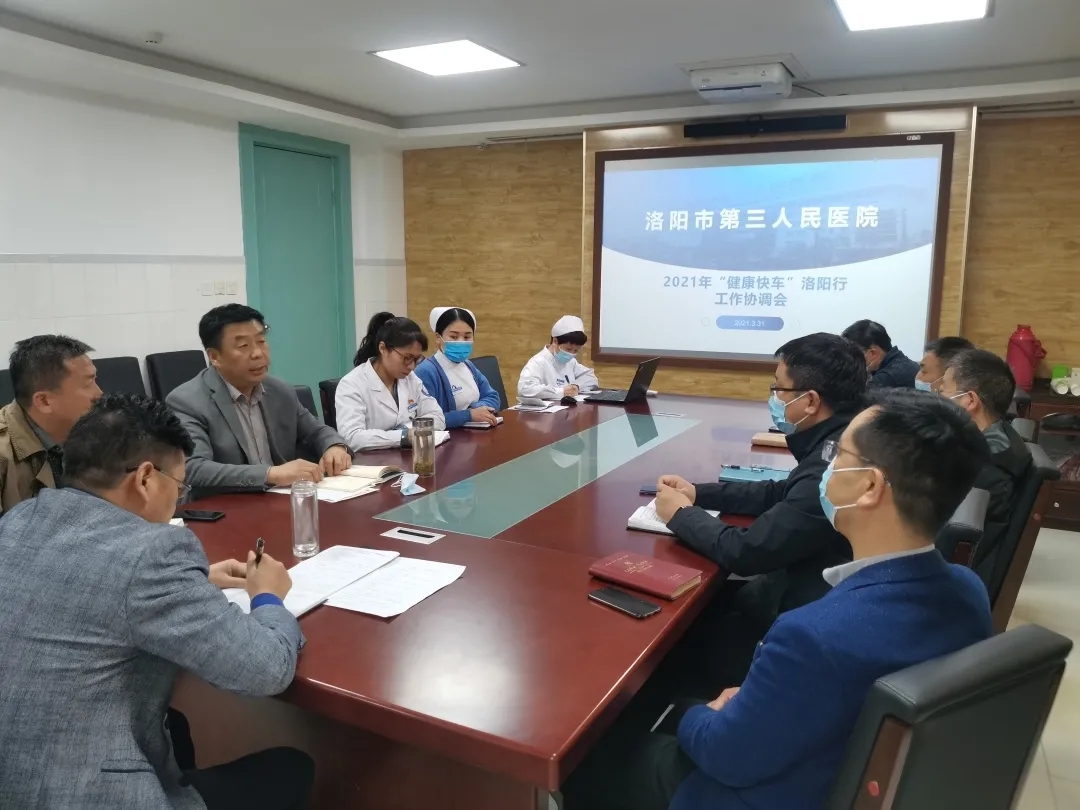 为确保此项工作顺利开展,医院成立“健康快车”活动领导小组,由党委书记马伟、院长邢建武任组长,工会主席段言文兼任办公室主任。3月30日下午,召开2021年“健康快车”洛阳行工作启动协调会,就健康快车工作进行安排部署。