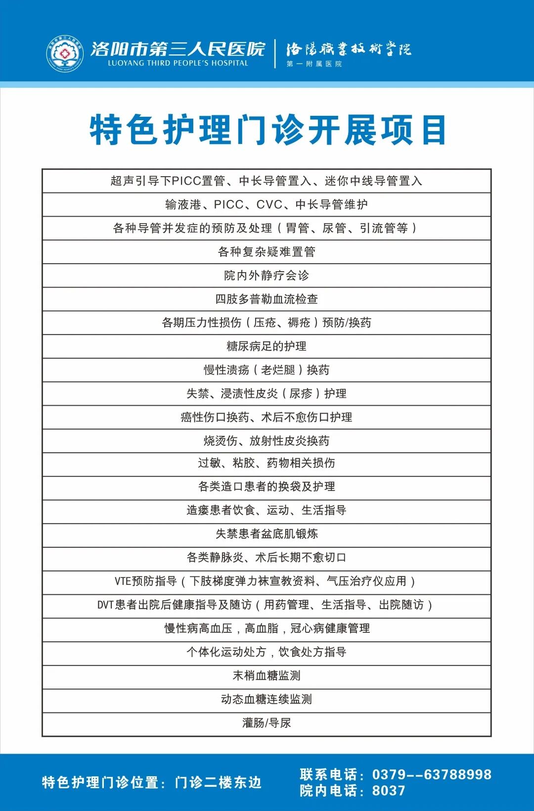 特色护理门诊位置:门诊楼二楼东边