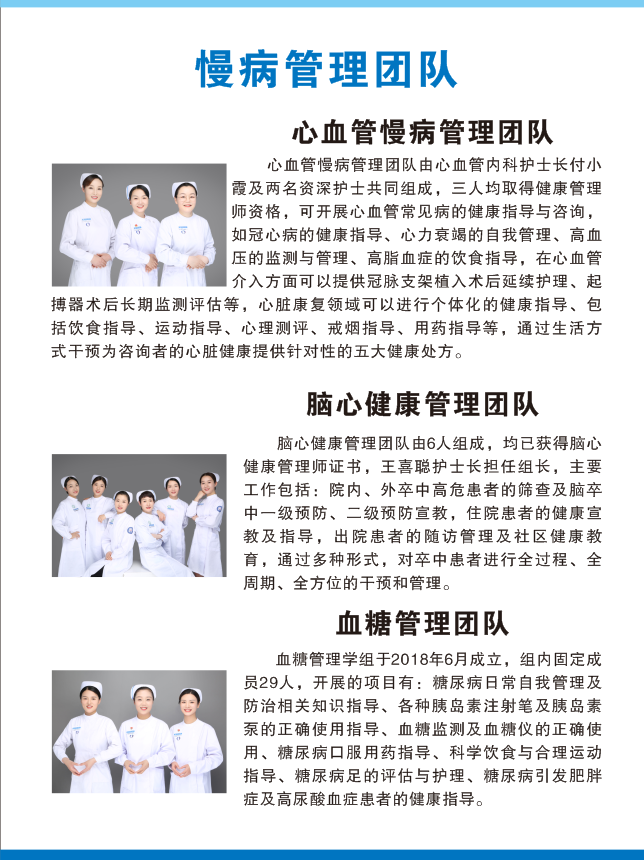 | 静脉治疗:PICC置管、维护 血糖管理:血糖监测及指导 |