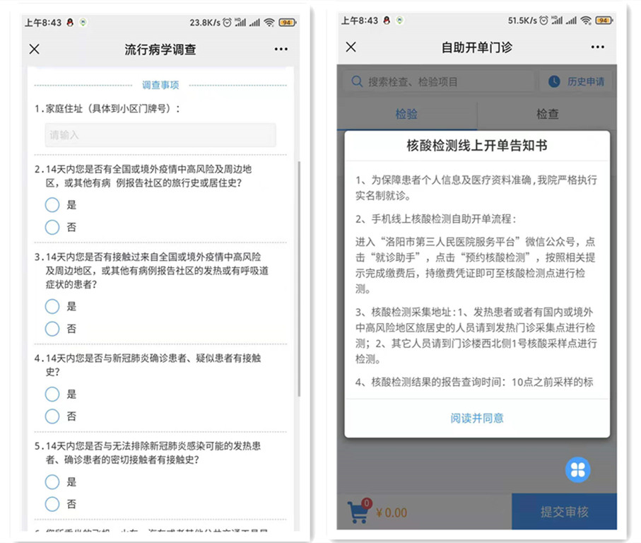 为更好地满足广大人民群众对核酸检测的需求,缩短检测时间,减少人群聚集,避免交叉感染,即日起,洛阳市第三人民医院核酸检测线上申请正式开通。