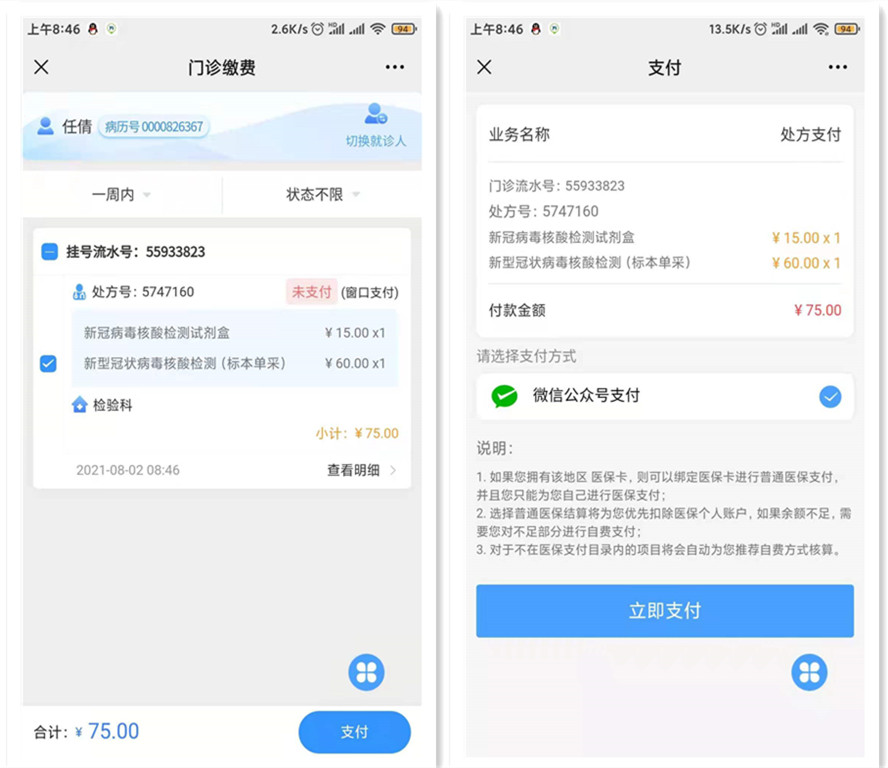 按照相关提示完成缴费后,持缴费凭证即可至核酸检测点进行检测。