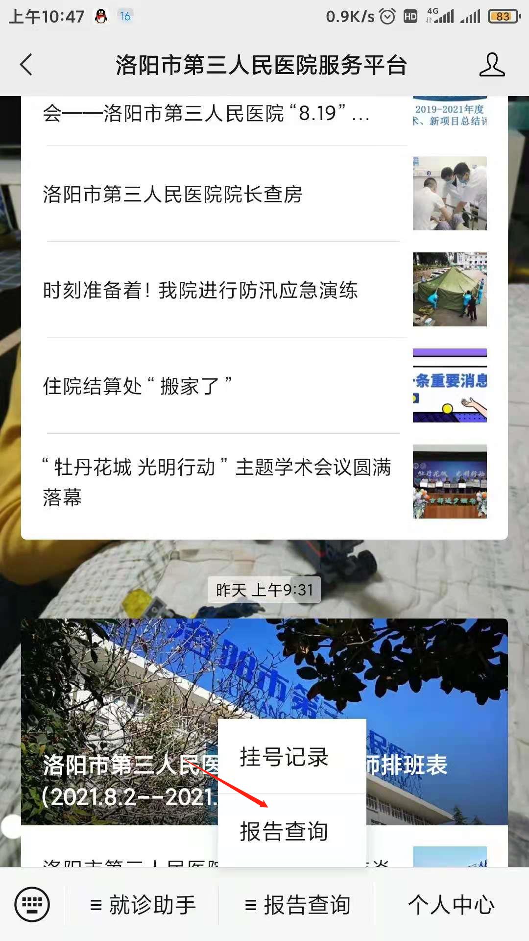 (1)检查结果会通过微信给您自动推送,您也可以通过公众号“就诊首页”中的“报告查取”直接查看;