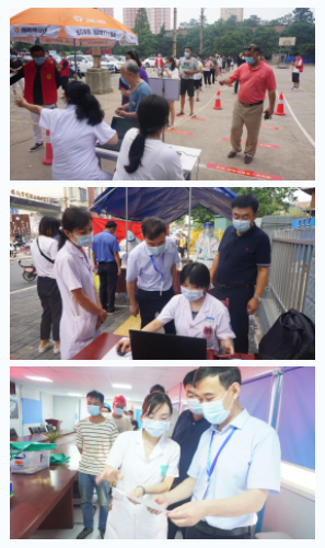 马伟到达发热门诊、核酸检测点、门诊预检分诊处及巨龙小区等外出采样点后, 要求大家一定要严格按照卫健委及医院疫情防控的要求和流程做好相关工作,叮嘱大家在做好疫情防控工作的同时,注意做好自身防护及高温防暑。