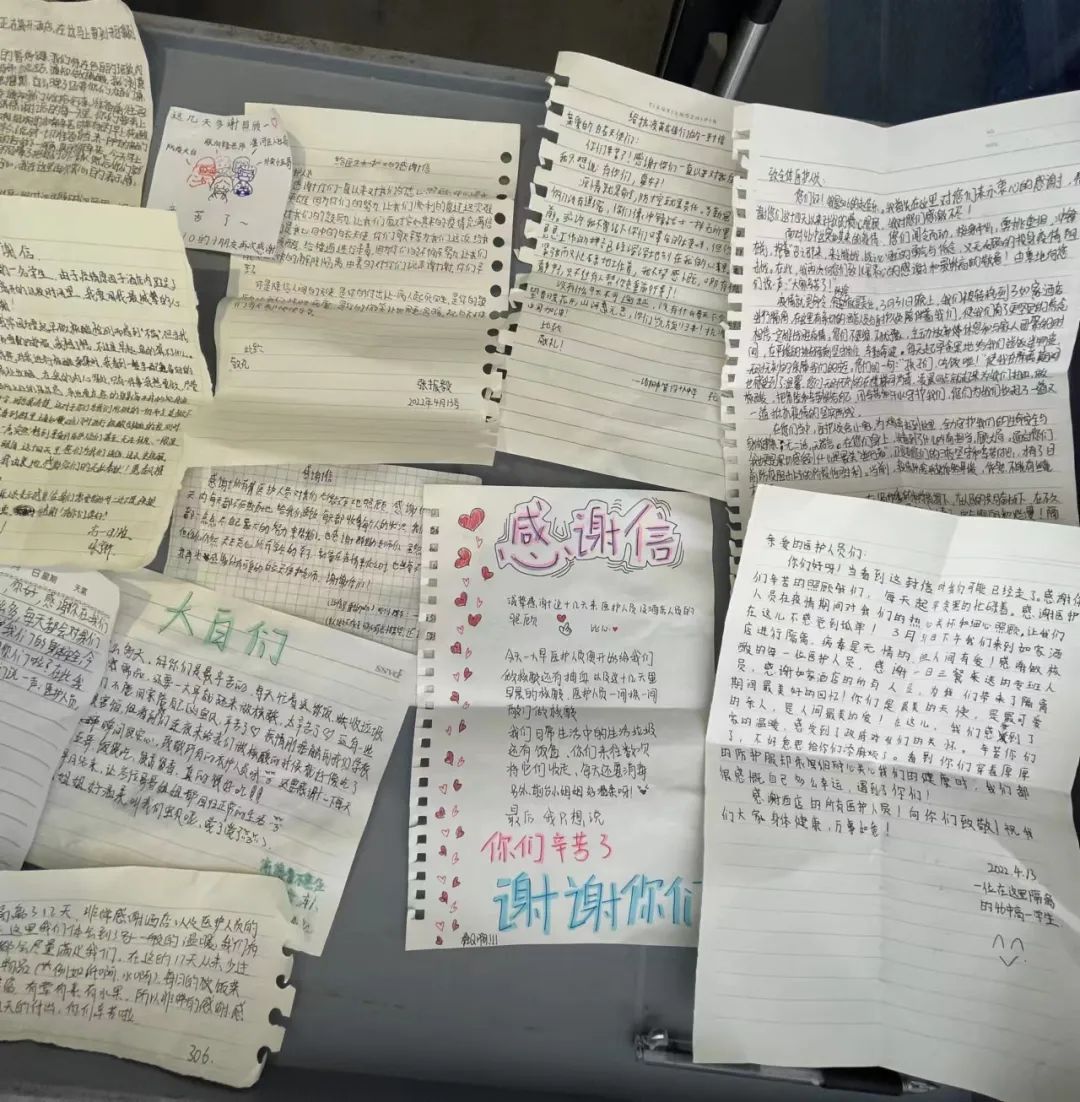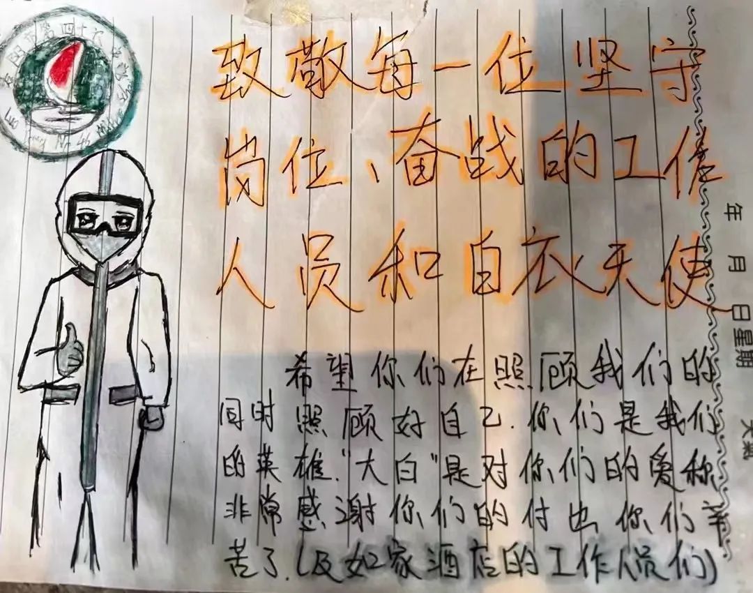 医护人员在这场抗击新冠肺炎疫情的“战疫”中,充当孩子们的“守门员”,坚守他们的健康防线。孩子们对白衣天使们这些天的守护,心存感激,在离别之际,一封封感谢信温暖了大家的心。