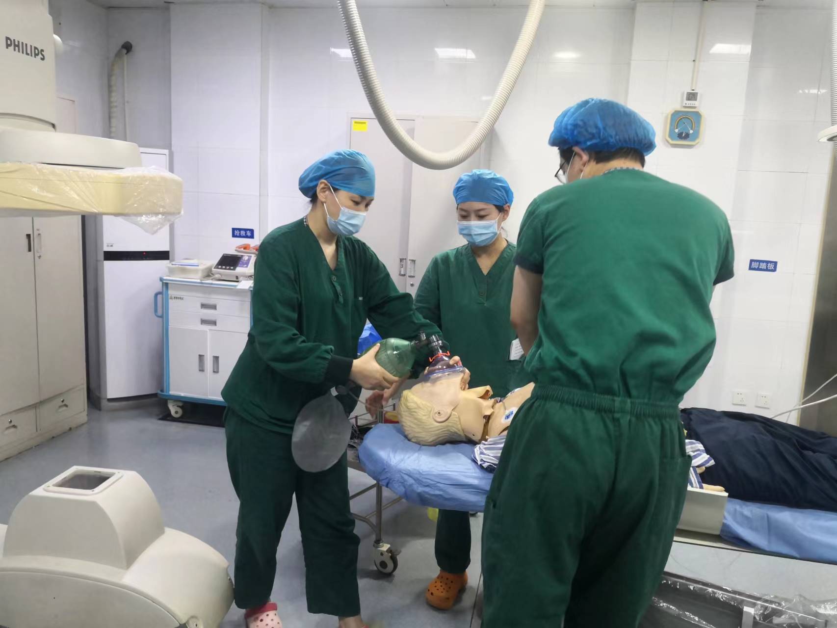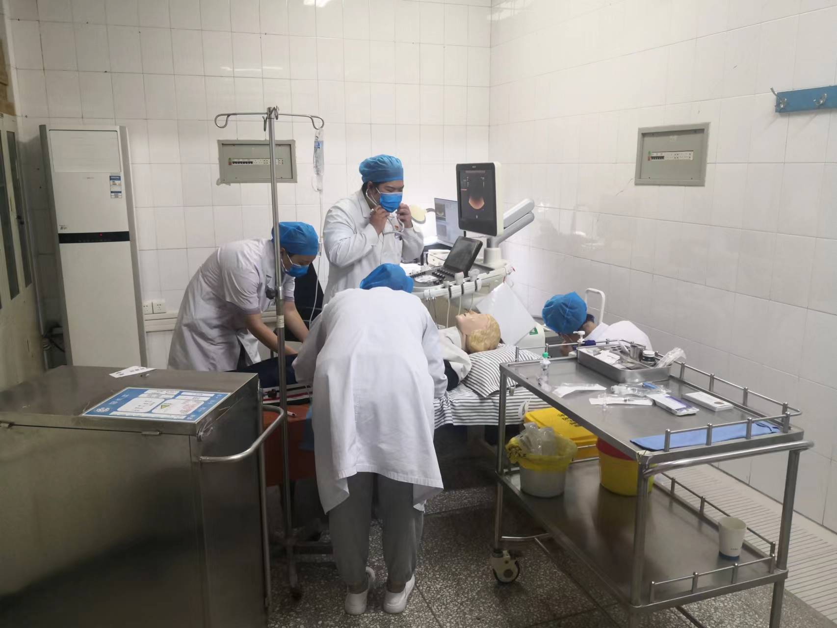为强化提升在患者诊疗过程中一旦发生药物过敏反应的救治速度和效果,提高用药安全性,提高医护人员的风险防范意识和识别、处理风险的能力,及时正确地采取有效抢救措施,增进医护配合的默契度,切实保障患者生命安全,在院领导的指导下,由门诊部、医务部、护理部协同组织,于2022年5月18日至20日下午,在介入室、影像科、急诊科、超声科分别进行了发生药物过敏性休克应急预案的演练。