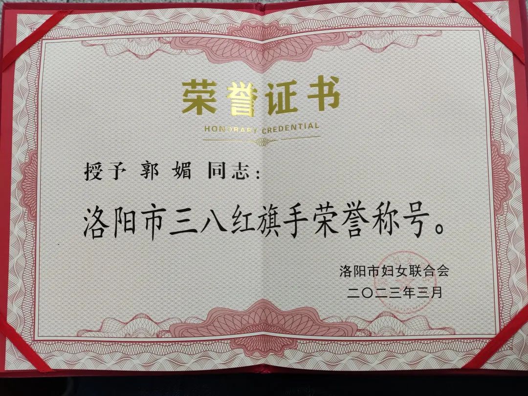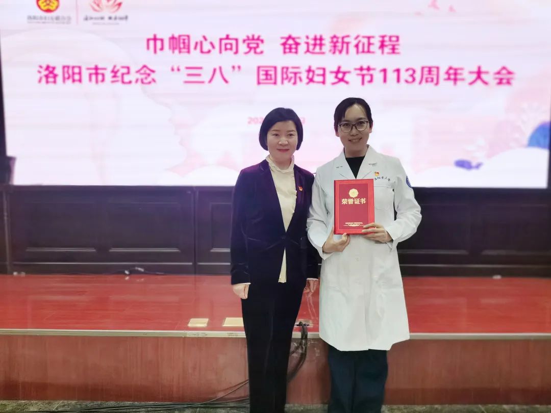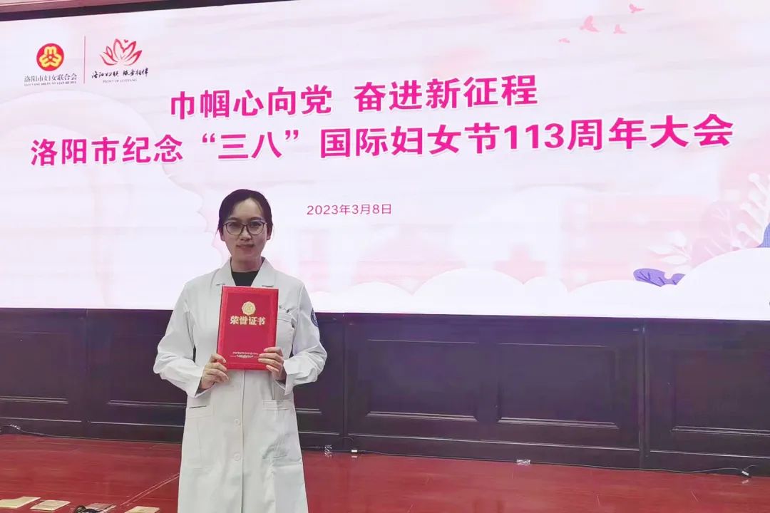“巾帼心向党,奋进新征程”,3月8日下午,洛阳市召开纪念“三八”国际妇女节113周年大会,对各行业优秀女性工作者个人和集体进行表彰,我院康复医学科主任郭媚被授予“洛阳市三八红旗手”荣誉称号。